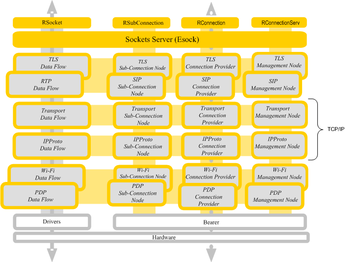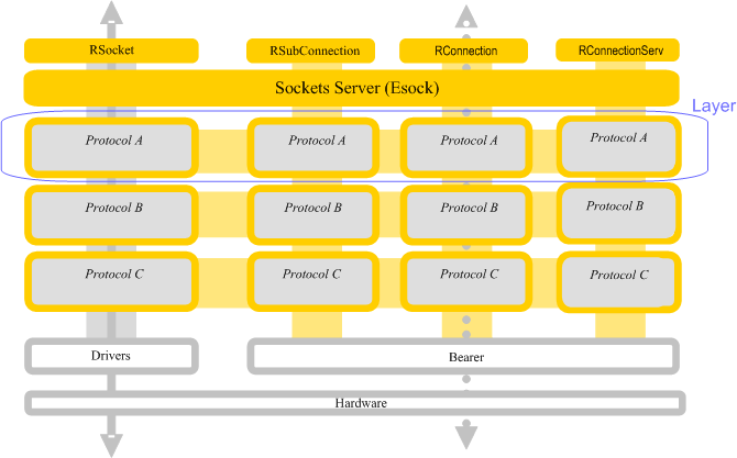 The concept of a Layer allows device creators to have different implementations in a given Layer. When a data connection starts or when the environment changes, the best protocol can be selected.