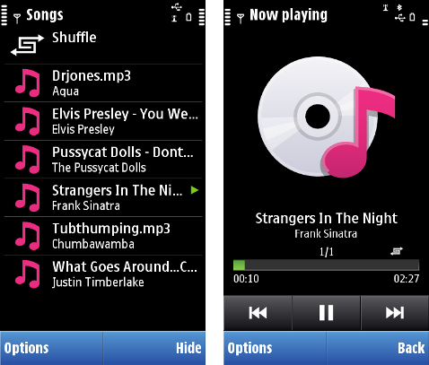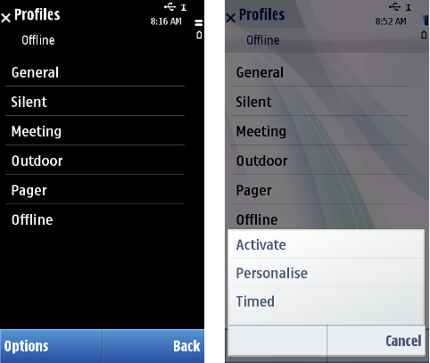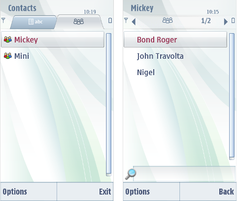 Typically, the user can open items in a selection list, leading into another, more detailed view of the item within the application. In addition to browsing and selecting items, other functions are available in the Options menu (see Options menu ).