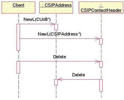 following illustration shows the steps for creating a CSIPContactHeader instance.