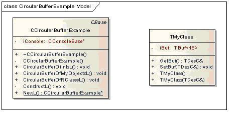 This example application shows how to construct and make use of circular buffers containing integers, objects of user defined classes and objects of an R class.