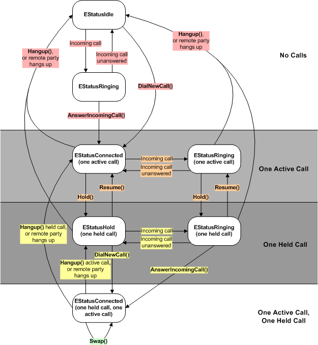 This state diagram shows how to dial or answer one or two calls