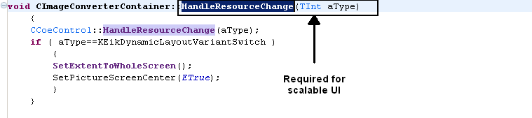 The following figures illustrate code required for handling scalable UI events.