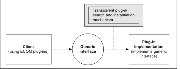 Plug-ins connect to the system using the EPOC Component Object Model (ECom). ECom is based on client/server architecture and provides services to instantiate, resolve, and destroy instances of plug-ins at run time. For more information, see the ECom Architecture .
