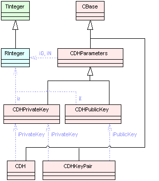 CRSAParameters , CDSAParameters , and CDHParameters are the base classes that allow a client to use the supported asymmetric algorithms listed above. The classes hold the domain parameters used by the public key algorithms. They are used by some of the asymmetric algorithms to define some common mathematical structures used by the encryption or signature processes.