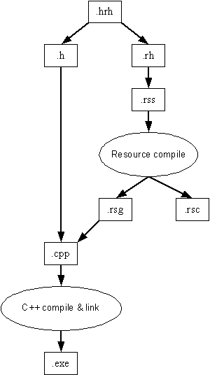 the resource compiler takes a .rss source file containing RESOURCE statements and converts it into a .rsc resource file which contains the resources the executable program will use. It also produces a .rsg generated header file, which contains the symbolic IDs of these resources.