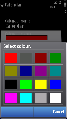 Color selection grid pop-up works similar to regular pop-ups, except for that dragging and flicking are disabled. Note that the grid can also have a None field but as a separate button. There is no initial focus in the color selection grid.