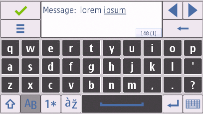 The virtual QWERTY keyboard displays a keyboard that has a collection of basic keyboard functions (Shift, Caps lock, punctuation marks, and so on) and a text field where the user can see the given input without having to follow it from the editor field. The handwriting recognition allows user to write characters on the screen with a finger.