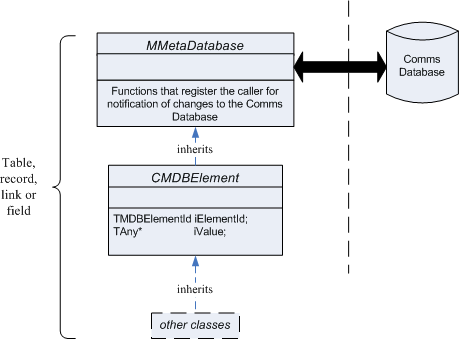 All elements that you can read and write have the class MMetaDatabase as a base class. This base class contains the functions that allow the CommsDat API to notify tools and applicaions of changes to the database.