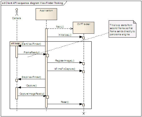 The CVFTracker is passed each viewfinder images which it checks and determines whether it is right time to capture the next image. In return it provides translation information CPanoramaTransform::GetTranslation() which indicates the shift of the current viewfinder image.