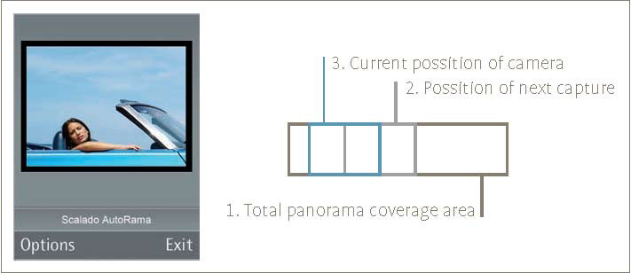 Here the screen area shows the viewfinder image. When you sweep the mobile, several images are captured and then the images are stitched to create a panorama image.