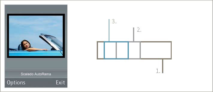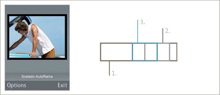 In the above diagram you see three different boxes named 1, 2 and 3 which represent the position of the camera. The blue box representation changes according to the rotation of the mobile phone.