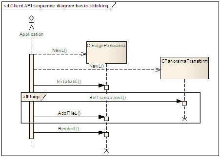 To add images to CImagePanorama , use CImagePanorama::AddFileL() , CImagePanorama::AddBufferL() or CImagePanorama::AddImageL() , providing a hint on relative positioning or translation of the images through CPanoramaTransform . This transform only needs to be approximate.