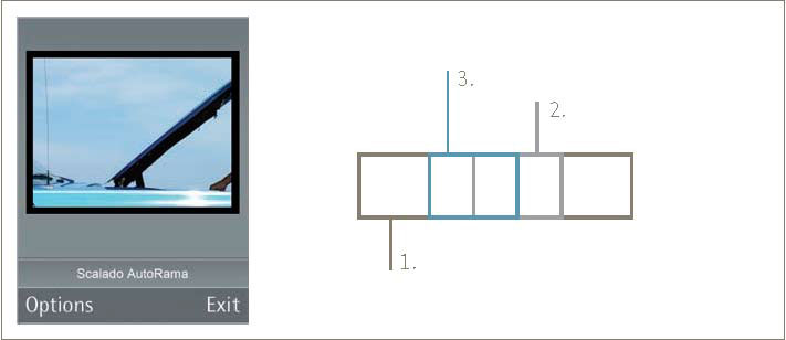 Note: The box representation is used in the UI, to help you to take better panorama images. In addition a vibration effect can be used to provide additional feedback on when to capture an image. For example, when you sweep the mobile phone, it is in tracking mode so it vibrates. When the mobile phone is ready to capture, the vibration stops to let you know that it must be static for capturing an accurate second image. Then when it vibrates again, you must rotate the mobile and until it stop.