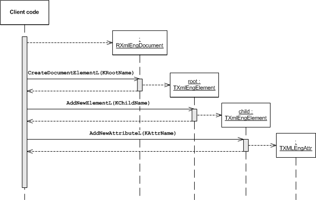 TXmlEngElement tempElement = root.AddNewElementL( KChildName );
