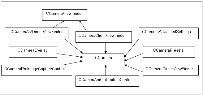 Licensees and partners implement the camera functionality for the camera hardware on their phone. All cameras are ECom plug-ins sub-classed from the CCameraPlugin class.