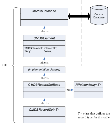 A table that has records defined at system compile time is represented by the templated class CMDBRecordSet <T> . The template parameter defines the record type. The template parameter is a Symbian platform defined record.
