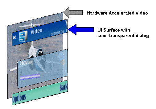 It is not possible, for example, to include a semi-transparent surface in front of the UI surface. In such cases the composition engine determines how the display is composed.