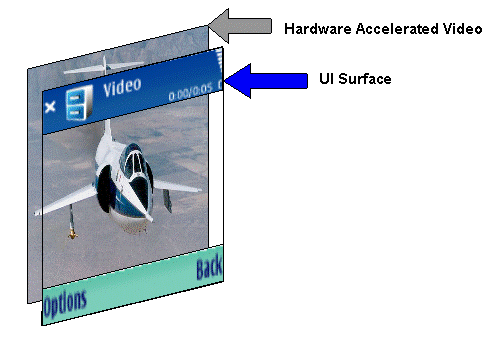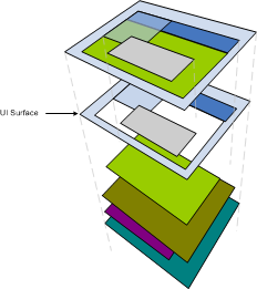 The compositing of surfaces according to their origin means that the physical composition process behaves differently from the logical composition process that is based on what the user and the UI are doing. Logically the windows in the UI and memory rendered surfaces may be on layers that are interleaved yet the memory rendered surfaces are physically composed behind.