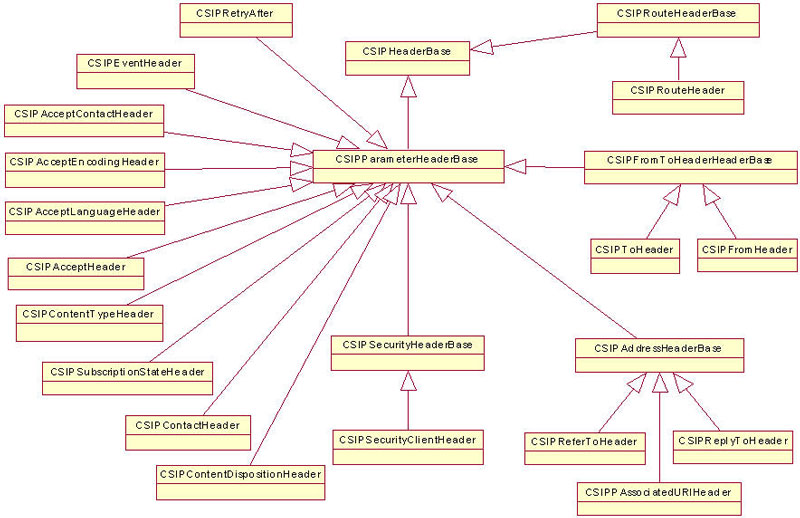The SIP Codec API defines the functions required to create the SIP headers of a SIP message. CSIPHeaderBase is the base class for all SIP headers. A client creates a new instance of the CSIPXHeader class, where “X” is the name of the header required, and sets the values of the header with the setter functions of this class.