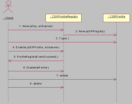 When you create a CSIPProfileRegistry object, the client connects to the shared SIP Profile server. Note : If the server is not running, it is started by the API implementation.
