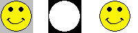 The following figure shows successively a source bitmap, a mask, and the outcome when they are blitted with BitBltMasked() .