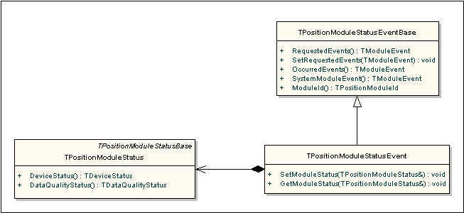 A change in Positioning Module status is indicated by a status event . Details of the event are held in a TPositionModuleStatusEvent object. Client applications can receive notification of status events from the location server.