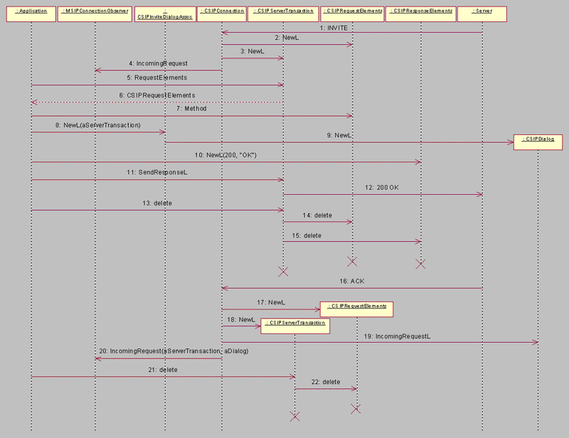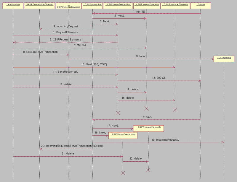CSIPInviteDialogAssoc then forms an INVITE request and communicates it to the server side of the SIP stack. It then creates a CSIPClientTransaction object, and returns it to the application.