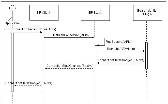 If the connection is inactive, notify the EInactive state to the application through MSIPConnectionObserver::ConnectionStateChanged() function that is, if (CSIPConnection::TState == EInactive) , then send a RefreshConnection() function to make it active.