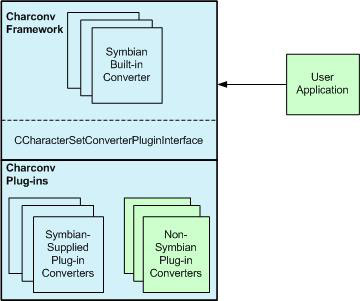 The Character Encoding and Conversion Plug-ins component, also referred to as Charconv Plug-ins, contains ECom plug-in converters for various languages not supported by the built-in converters. Device creators can write additional plug-in converters by implementing the CCharacterSetConverterPluginInterface interface.