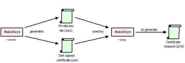 The MakeKeys tool is a PC-side stand-alone tool that helps you to create a private key-public key pair and generate certificate requests.
