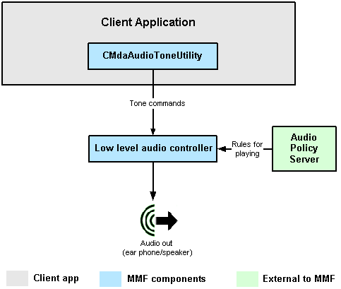 The Audio Client provide a simple interface for tone generation (synthesized sounds) that enables the playing of tone sequences and DTMF (Dual-Tone Multi-Frequency) strings. The tone player functionality is provided by the CMdaAudioToneUtility class and using this class you can play:
