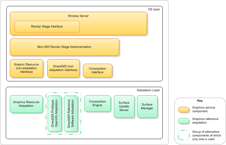 The Graphics Resource component provides an abstraction layer for the memory management of pixel and non-pixel data (such as OpenVG command lists). Like DirectGDI, it has a generic part, which provides a client API and an adaptation part, which device creators can adapt to take advantage of graphics hardware when it is available.