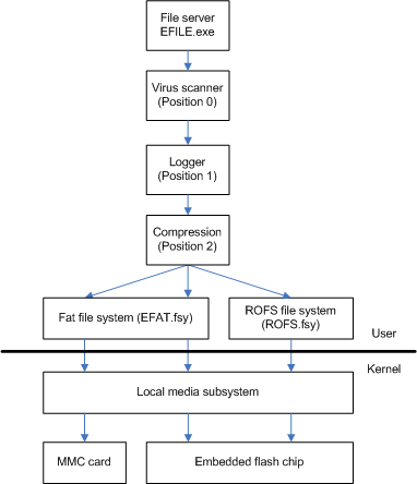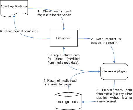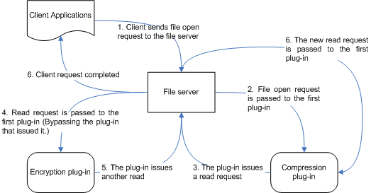 The sequence of events for a typical plugin intercepting a file read request is illustrated below: