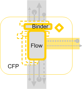 Binder - A Binder handles the interface between the current Flow and the Layer above. A Binder connects two CF Protocols together so that they can communicate data and sometimes commands. A Flow can have more than one Binder if it needs to connect to more than one Flow in the Layer above.