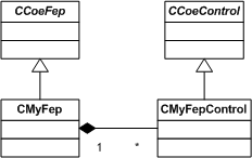 The FEP base, CCoeFep , is the abstract base class from which a FEP is derived. A FEP is typically implemented to have a window owning control, the standard means of receiving input events. The UI Control Framework uses a control stack to determine the order in which controls are offered key events. A FEP places its control on the stack with a high priority such that it has first access to key events.