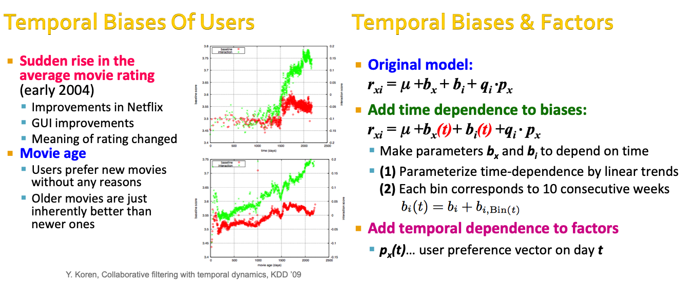 "Y. Koren, Collaborative filtering with temporal dynamics, KDD ’09\n",