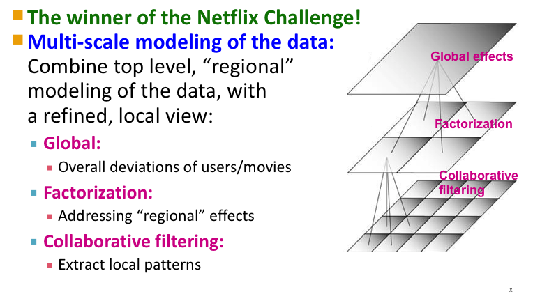 "**Competition** 2,700+ teams, $1 million prize for 10% improvement on Netflix"