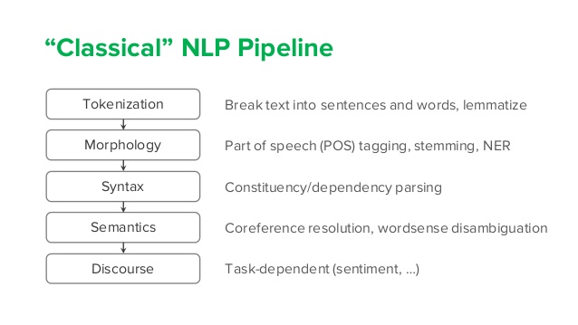 { "cells": [ { "cell_type": "markdown", "metadata": {}, "source": [ "# Chapter 15: Off to analyzing text" ] }, { "cell_type": "markdown", "metadata": {}, "source": [ "Way to go! You have already learned a lot of essential components of the Python language. Being able to deal with data structures, import packages, build your own functions and operate with files is not only essential for most tasks in Python, but also a prerequisite for text analysis. We have applied some common preprocessing steps like casefolding/lowercasing, punctuation removal, and stemming/lemmatization. Did you know that there are some very useful NLP packages and modules that do some of these steps? One that is often used in text analysis is the Python package **NLTK (the Natural Language Toolkit)**.\n", "\n", "### At the end of this chapter, you will be able to:\n", "* have an idea of the NLP tasks that constitute an NLP pipeline\n", "* use the functions of the NLTK module to manipulate the content of files for NLP purposes (e.g. sentence splitting, tokenization, POS-tagging, and lemmatization);\n", "* do nesting of multiple for-loops or files\n", "\n", "### More NLP software for Python:\n", "* [NLTK](http://www.nltk.org/)\n", "* [SpaCy](https://spacy.io/)\n", "* [Stanford CoreNLP](https://stanfordnlp.github.io/CoreNLP/index.html)\n", "* [About Python NLP libraries](https://elitedatascience.com/python-nlp-libraries)\n", "\n", "\n", "If you have **questions** about this chapter, please contact us **(cltl.python.course@gmail.com)**." ] }, { "cell_type": "markdown", "metadata": {}, "source": [ "# 1 A short intro to text processing" ] }, { "cell_type": "markdown", "metadata": {}, "source": [ "There are many aspects of text we can (try to) analyze. Commonly used analyses conducted in Natural Language Processing (**NLP**) are for instance:\n", "\n", "* determining the part of speech of words in a text (verb, noun, etc.)\n", "* analyzing the syntactic relations between words and phrases in a sentence (i.e., syntactic parsing)\n", "* analyzing which entities (people, organizations, locations) are mentioned in a text\n", "\n", "...and many more. Each of these aspects is addressed within its own **NLP task**. \n", "\n", "**The NLP pipeline**\n", "\n", "Usually, these tasks are carried out sequentially because they depend on each other. For instance, we need to first tokenize the text (split it into words) in order to be able to assign part-of-speech tags to each word. This sequence is often called an **NLP pipeline**. For example, a general pipeline could consist of the components shown below (taken from [here](https://www.slideshare.net/YuriyGuts/natural-language-processing-nlp)) You can see the NLP pipeline of the NewsReader project [here](http://www.newsreader-project.eu/files/2014/02/SystemArchitecture.png). (you can ignore the middle part of the picture, and focus on the blue and green boxes in the outer row).\n", "\n", "\n", "\n", "In this chapter we will look into four simple NLP modules that are nevertheless very common in NLP: **tokenization, sentence splitting**, **lemmatization** and **POS tagging**. \n", "\n", "There are also more advanced processing modules out there - feel free to do some research yourself :-) " ] }, { "cell_type": "markdown", "metadata": {}, "source": [ "# 2 The NLTK package" ] }, { "cell_type": "markdown", "metadata": {}, "source": [ "NLTK (Natural Language Processing Toolkit) is a module we can use for most fundamental aspects of natural language processing. There are many more advanced approaches out there, but it is a good way of getting started. \n", "\n", "Here we will show you how to use it for tokenization, sentence splitting, POS tagging, and lemmatization. These steps are necessary processing steps for most NLP tasks. \n", "\n", "We will first give you an overview of all tasks and then delve into each of them in more detail. \n", "\n", "Before we can use NLTK for the first time, we have to make sure it is downloaded and installed on our computer (some of you may have already done this). \n", "\n", "To install NLTK, please try to run the following two cells. If this does not work, please try and follow the [documentation](http://www.nltk.org/install.html). If you don't manage to get this to work, please ask for help. " ] }, { "cell_type": "code", "execution_count": null, "metadata": {}, "outputs": [], "source": [ "%%bash\n", "pip install nltk" ] }, { "cell_type": "markdown", "metadata": {}, "source": [ "Once you have downloaded the NLTK book, you do not need to run the download again. If you are using the NLTK again, it is sufficient to import it." ] }, { "cell_type": "code", "execution_count": null, "metadata": {}, "outputs": [], "source": [ "# downloading nltk\n", "\n", "import nltk\n", "nltk.download('book')" ] }, { "cell_type": "markdown", "metadata": {}, "source": [ "Now that we have installed and downloaded NLTK, let's look at an example of a simple NLP pipeline. In the following cell, you can observe how we tokenize raw text into tokens and setnences, perform part of speech tagging and lemmatize some of the tokens. Don't worry about the details just yet - we will go trhough them step by step. " ] }, { "cell_type": "code", "execution_count": null, "metadata": {}, "outputs": [], "source": [ "text = \"This example sentence is used for illustrating some basic NLP tasks. Language is awesome!\"\n", "\n", "# Tokenization\n", "tokens = nltk.word_tokenize(text)\n", "\n", "# Sentence splitting\n", "sentences = nltk.sent_tokenize(text)\n", "\n", "# POS tagging\n", "tagged_tokens = nltk.pos_tag(tokens)\n", "\n", "# Lemmatization\n", "lmtzr = nltk.stem.wordnet.WordNetLemmatizer()\n", "lemma=lmtzr.lemmatize(tokens[4], 'v')\n", "\n", "# Printing all information\n", "print(tokens)\n", "print(sentences)\n", "print(tagged_tokens)\n", "print(lemma)" ] }, { "cell_type": "markdown", "metadata": {}, "source": [ "## 2.1 Tokenization and sentence splitting with NLTK" ] }, { "cell_type": "markdown", "m
