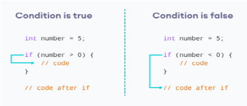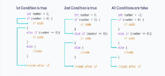 In the above program if number is greater than 0, code inside body of if is executed. If number is smaller than 0 , code inside body of else if is executed. Otherwise, the code inside body of else is executed.