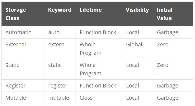 Every variable in C++ has two features: type and storage class.