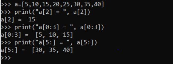 We can use the slicing operator [ ] to extract an item or a range of items from a list. The index starts from 0 in Python.