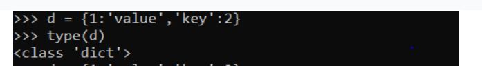 In Python, dictionaries are defined within braces {} with each item being a pair in the form key:value . Key and value can be of any type.