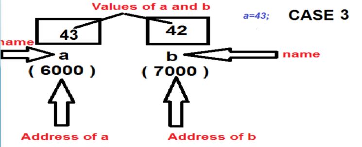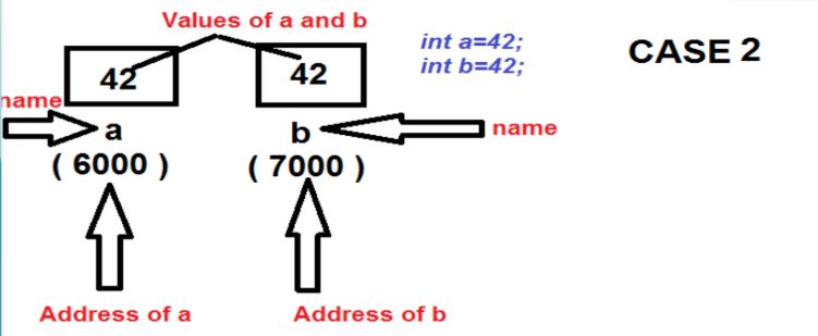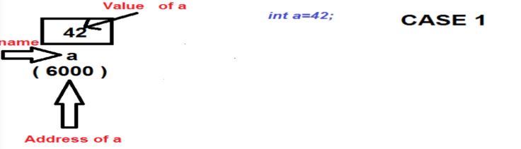 In C language whe we declare a vairable and assign value to it then some space is created in memory by the given name and the given values is stored in it. Suppose we write the statement int a=42;, then the following will be the memory diagram