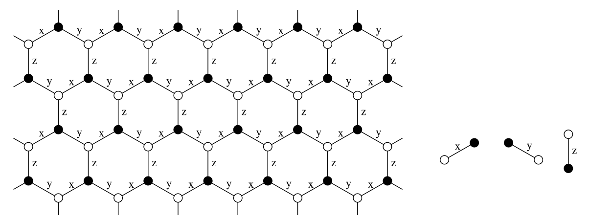 蜂窝六角晶格,在晶格每个顶点有自旋1/2的粒子。