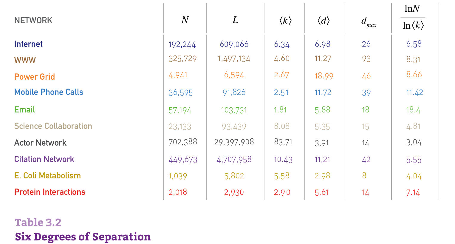 "- (a) Small World Property: In real networks the average distance between two nodes depends logarithmically on N\n",