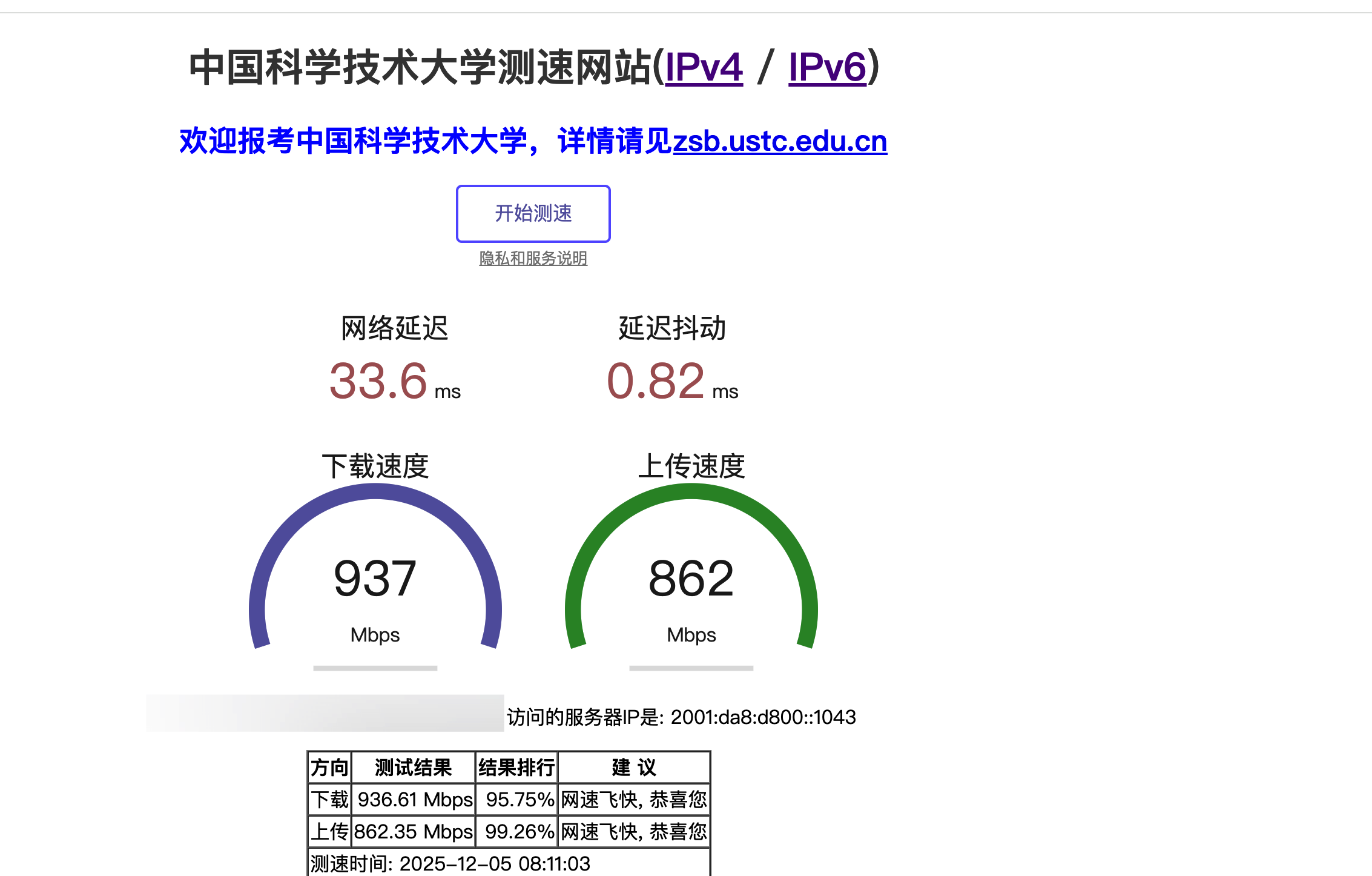 运营商给的是交换模式,这种情况在用户侧的出口防火墙配置,配置好了,但是发现就是不通,然后采取了第二种方式,用路由模式,进行配置以后,网络直接通了,IPv4和IPv6的速率可以保持一致了,测试结果如下: