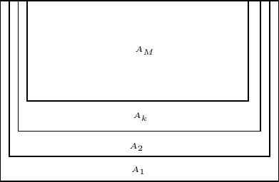 " The difference with respect to previous schemes, is that this extended region will now be considered as the union of several gradual extensions. As represented in the next figure, we define a region $A_M=\\Omega_{0}$. The regions $A_k, k=M-1,\\cdots,1$ will be defined as the previous region $A_{k+1}$ to which we add one extra grid line to the left,\n",
