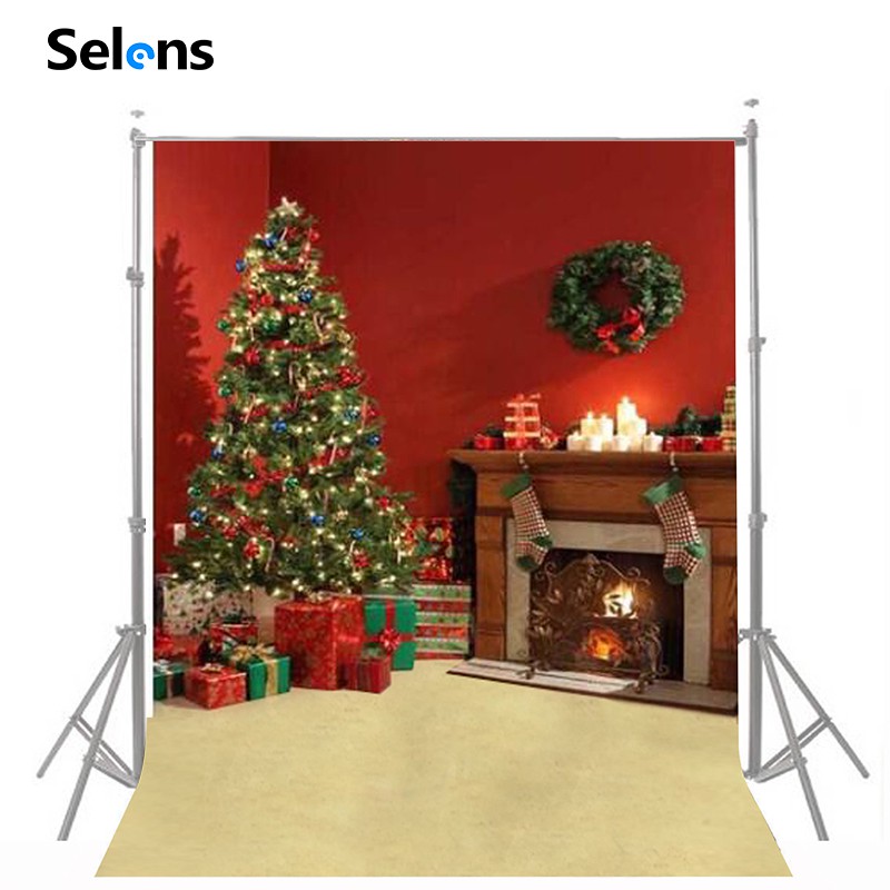 Haillom xmas fireplace backdrop christmas tree photography background.
