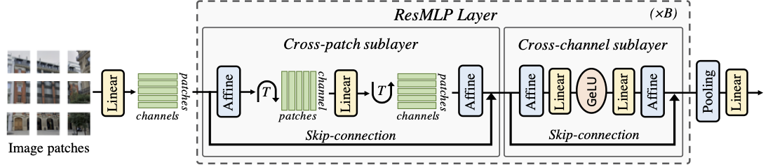 For details see [ResMLP: Feedforward networks for image classification with data-efficient training](https://arxiv.org/abs/2105.03404) by Hugo Touvron, Piotr Bojanowski, Mathilde Caron, Matthieu Cord, Alaaeldin El-Nouby, Edouard Grave, Gautier Izacard, Armand Joulin, Gabriel Synnaeve, Jakob Verbeek and Hervé Jégou.