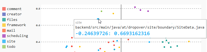 "With this nice little data structure, we can fill pygal's XY chart and create [an interactive chart](https://feststelltaste.github.io/software-analytics/notebooks/vis/checking_modularization/dropover.html)."